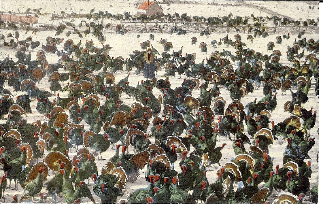 I remember really clearly driving by turkey farms on the way to the beach when I was a kid. Took me a long time to figure out that they were turkeys….rows of low, dark sheds.