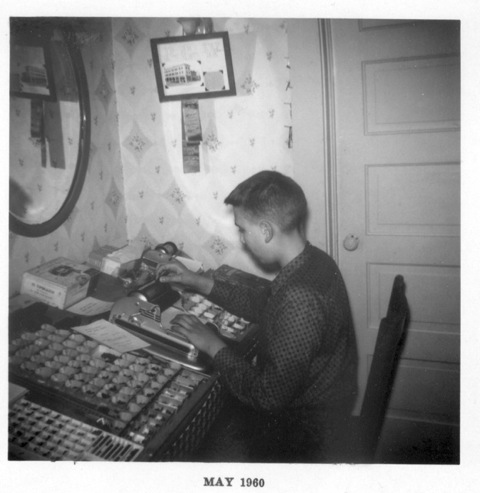 Here are some photos from our years at the house. The photo of me shows me with my printing press and trays of rubber type; the Warrenton Lighthouse was issued from this Sunnymead office! The article in the Daily Astorian includes an account of the Columbus Day storm of 1962 and some photos of the fire damage. Other reminiscences of this wonderful place may yet appear!
