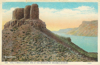 I can’t resist posting the entire piece: the one-page article on Coalca’s Pillar and its “legend.” Published in the Southern Pacific Company’s travel-and-booster magazine Sunset in March 1900, “Coalca’s Pillar” is the only telling I have ever seen of this tale, which features a Clackamas chief called Chelko, his daughter Nawalla, and a Molalla chief named Coalca. My inference is that this is a fabrication of ca. 1899, by author unknown; I’d love to know more about it. You might also want to see the earlier posting on Coalca’s Pillar and our once-robust fascination with basaltic plugs.