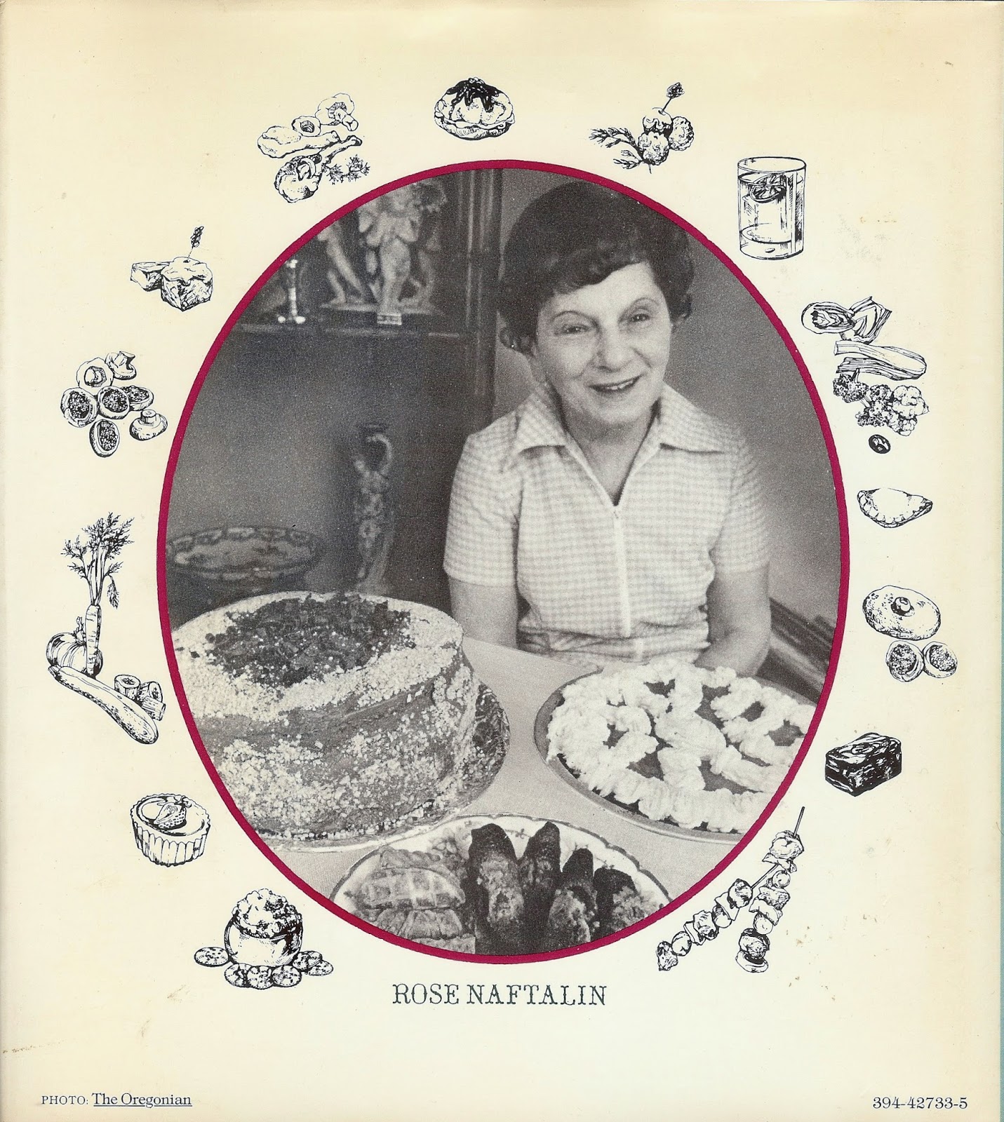 Rose tried to retire, and she sold the restaurant in 1968; it continued strongly into the 1980s, but limped on after that and appears now to have expired in all but name. Rose then put her restless talents toward writing a cookbook. In 1975, to wide acclaim, Random House published Grandma Rose’s Book of Sinfully Delicious Cakes, Cookies, Pies, Cheese Cakes, Cake Rolls & Pastries. It was followed in 1978 by Grandma Rose’s Book of Sinfully Delicious Snacks, Nibbles, Noshes & Other Delights. The two books sold more than 400,000 copies. Barbara Durbin, food writer for the Oregonian, dubbed the author “the Rose City’s most famous Rose.”