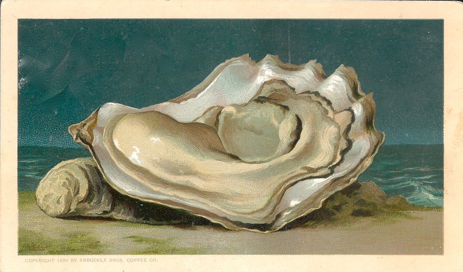 The interview was also aired on KBOO community radio’s Food Show in Portland on July 15. Chris wanted stories, so there are stories about the rise and fall of horsemeat commerce, and about oysters. The oyster stories derive from two items of paper ephemera: a restaurant menu from Eastern Oregon during World War I, and an 1889 advertising trade card from Arbuckle’s coffee.