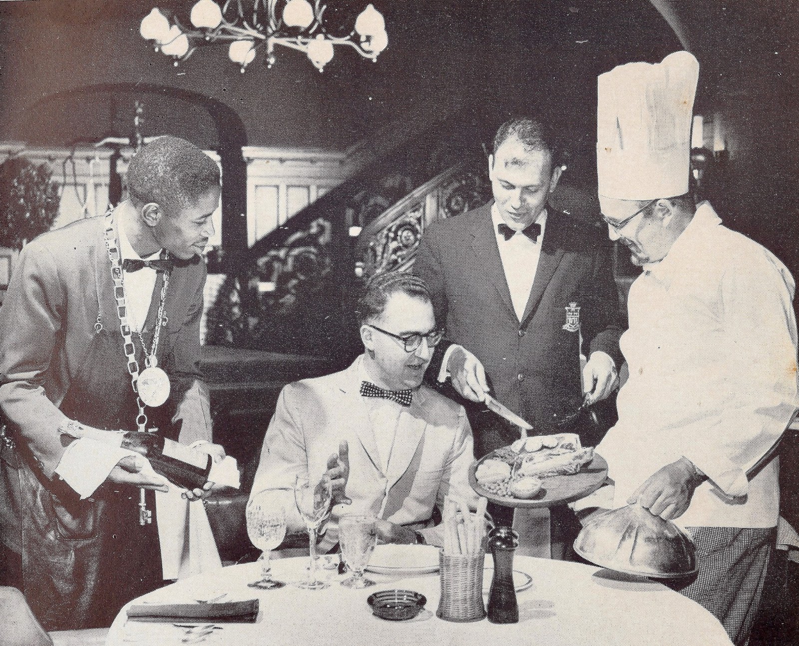| John A. Armstrong at the Benson Hotel. Wine steward Othel Lathan, manager Oswaldo Llorens, chef Henry Hodler. Carl Vermilya photo |